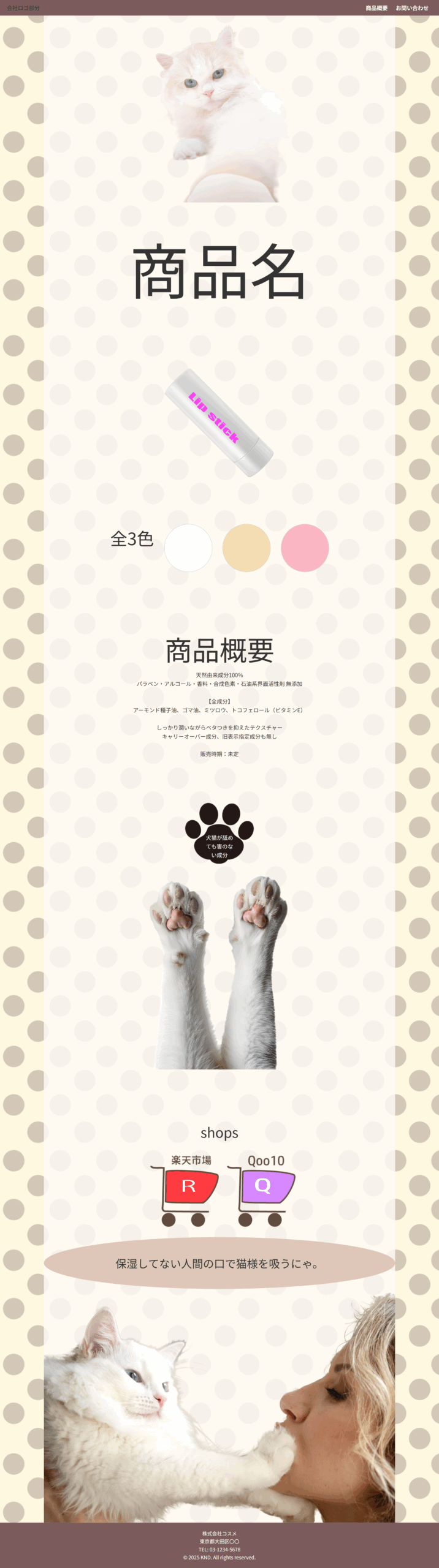 化粧品メーカーより、動物にも優しい人間用リップクリームの告知LP制作